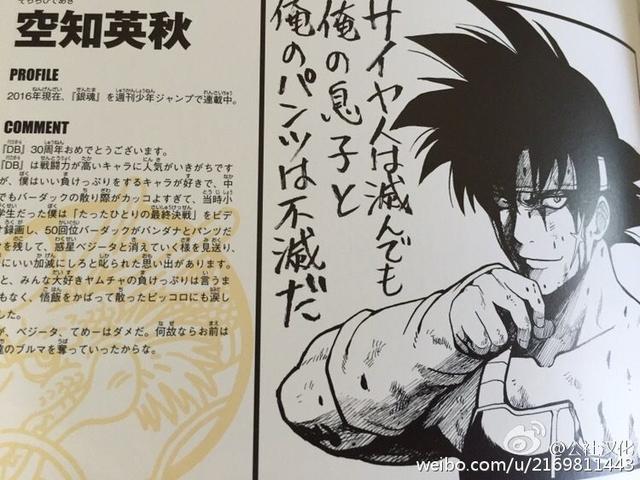 ▼《銀魂》的作者空知英秋,上面寫著:「就算賽亞人毀滅了,我的兒子和內褲也不會毀滅的!」