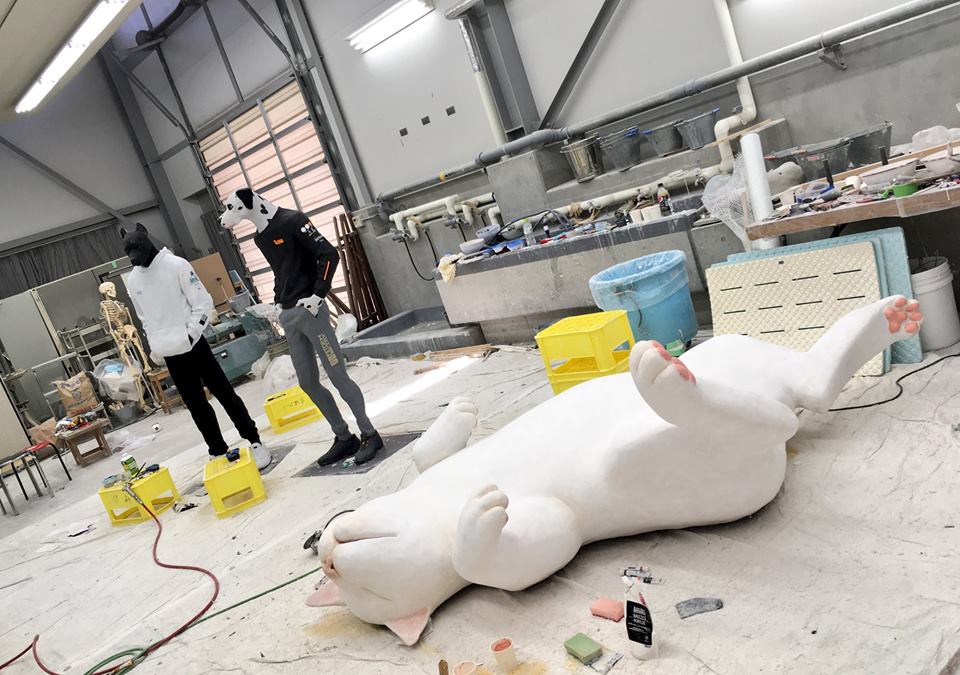 ▼原來 ぼぼち 為了拿出最好的作品,於是花了長達半年的時間,做出了一隻兩公尺長的巨星貓咪像。