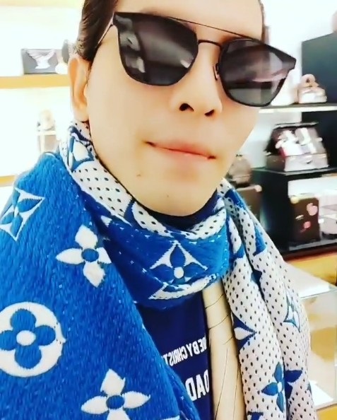 ▼看得出他非常喜歡這條圍巾,一直不捨得拿掉,最後還tag了LV的IG帳號,可是卻也表示「錢還沒付…」