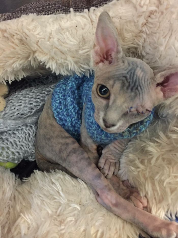 ▼這隻貓咪叫做Stitch。Phoebe看到牠的一刻,就決定將牠帶回家。