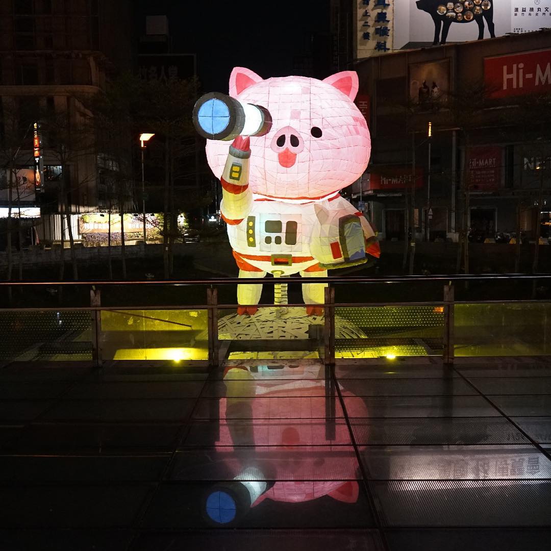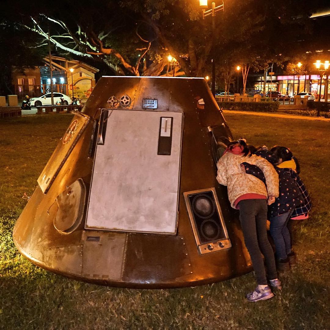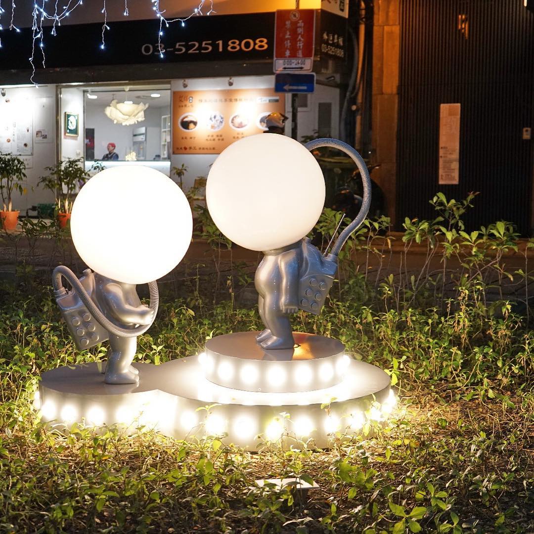 ▼除了漂浮地球,新竹市政府也在護城河沿線打造了六件藝術裝置,分別有月球人、小豬太空人和太空梭。