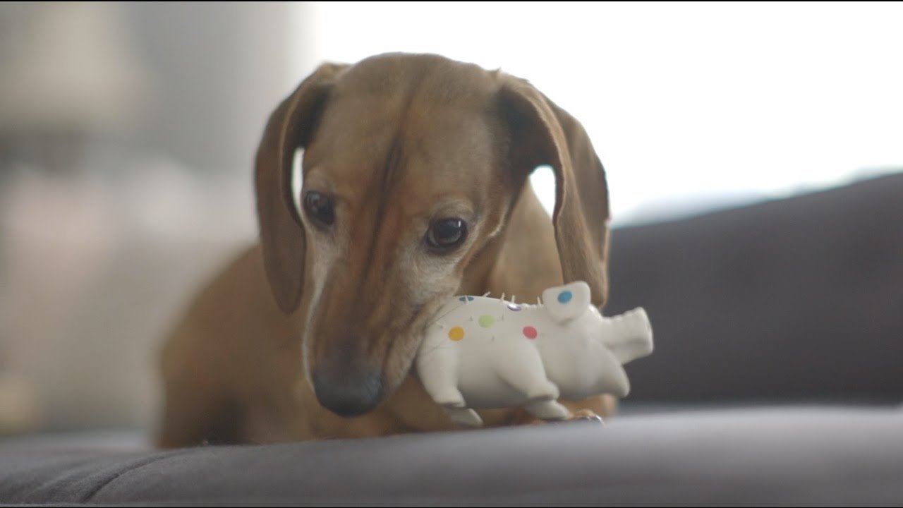 ▼一直到最近,主人終於在家中的某個角落找到了小豬玩偶,當芬恩聽見熟悉的聲音那刻,牠發出小狗狗獨有的細微叫聲把大家的心都融化惹: