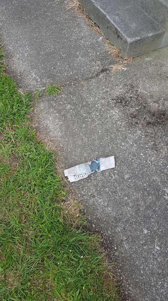 ▼仔細觀察這些報紙,會發現上面有被咬過的痕跡,但這些報紙又是怎麼跑到她的庭院中的呢?