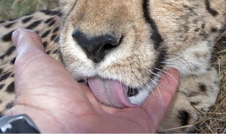 這位志工說獵豹這種生物真的很不可思議,牠們能很快親近人類,但前提是你對牠也要展現足夠的尊重和信任。一開始這隻獵豹的親跟舔都不太會掌握力道,所以他有時候會受傷,不過在幾番教育之後,獵豹也漸漸學會了控制力度。只是對我們而言,跟獵豹這樣親密的相處,還是很難以相信的一件事啊!