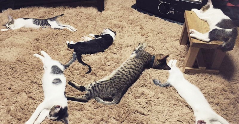回家驚見9隻愛貓軟癱的「案發現場」 他靠近發現真相笑到秒PO網