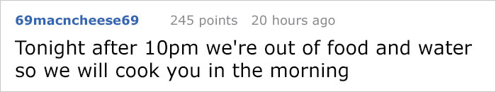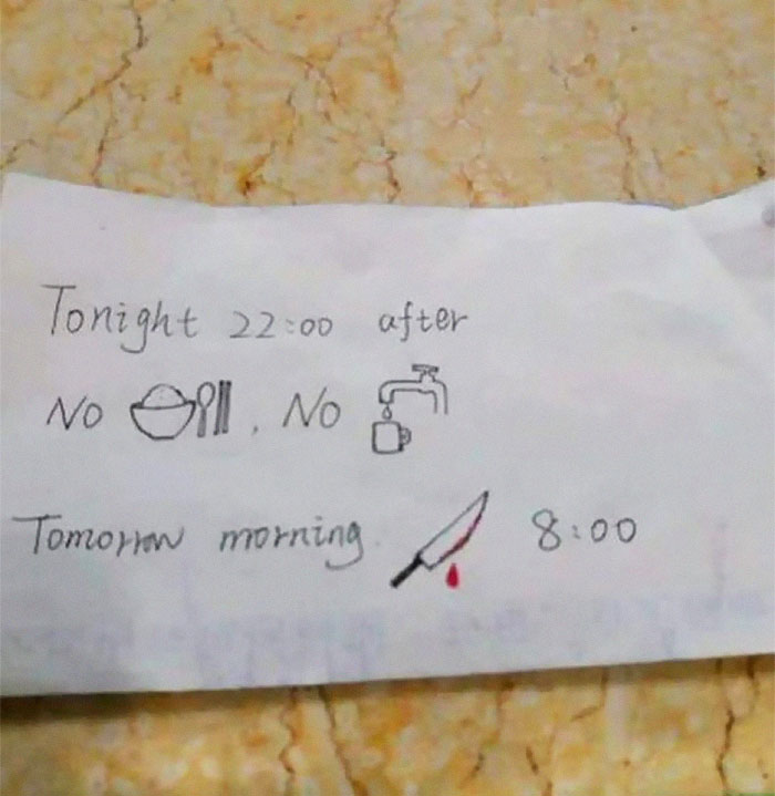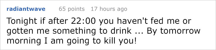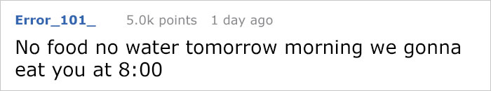 ▼「如果今晚10點後你還沒有給我準備好食物和水,明天早上我會宰了你。」