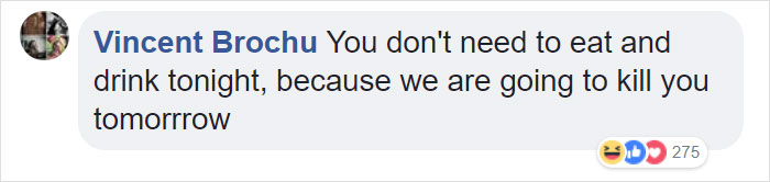 ▼「今晚你不需要吃喝,因為明早我們要宰了你。」