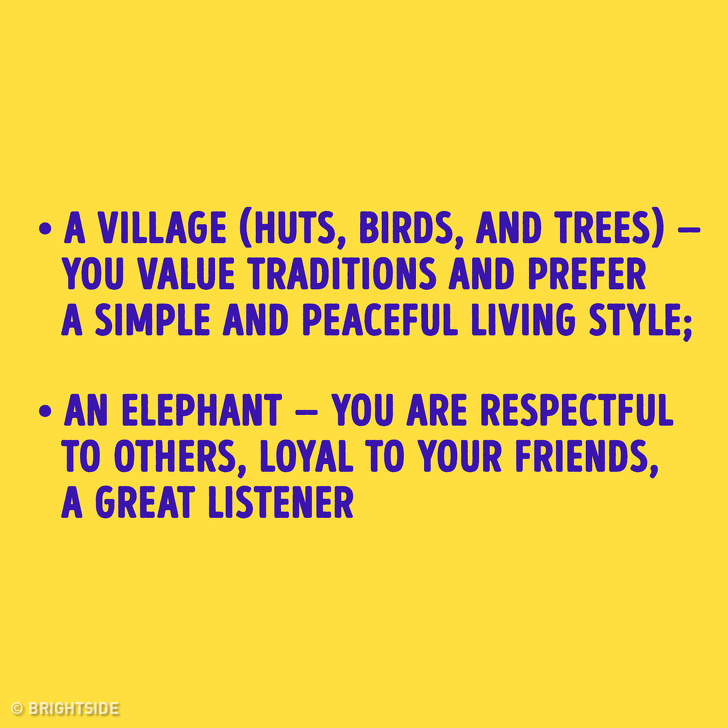▼一個村莊(小屋、鳥、樹):你很注重傳統,喜歡簡單愜意的生活。