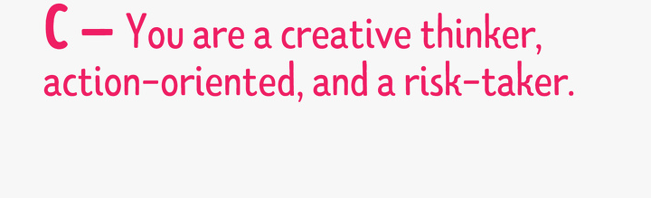 ▼C:你的腦子裡滿滿都是創意Idea,而且執行力很高,也很願意冒險。