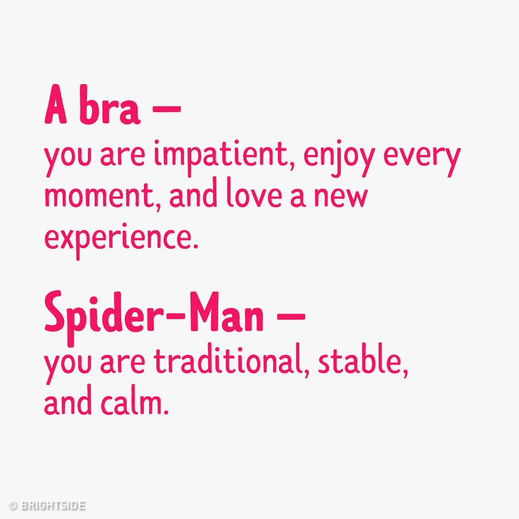 ▼胸罩:你缺乏耐性、喜歡活在當下的感覺、勇於嘗試新事物。
