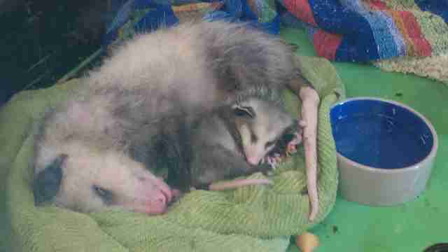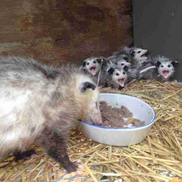 ▼負鼠媽媽很安靜,但小負鼠們野性難馴,並不友善。志工們認為這是個好徵兆,因為只有這樣,牠們才能在野外險惡的環境中生存下來。