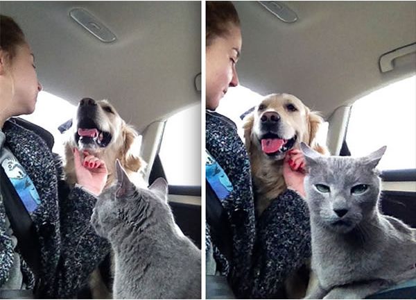 ▼1.不只橘貓表情有戲,旁邊的狗狗的眼神也很到位。