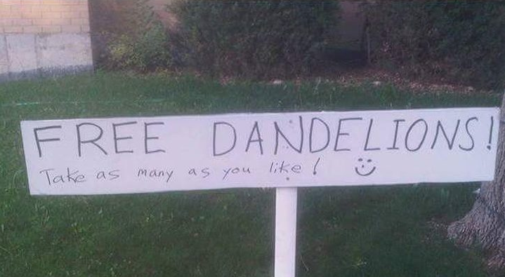 ▼於是鄰居立了一個牌子寫著:「免費的蒲公英!喜歡的話盡量拿!」
