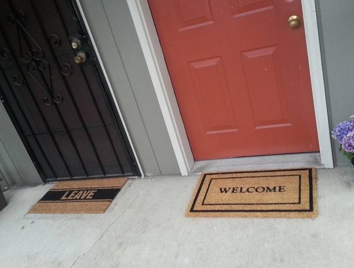 ▼我的地毯寫著「歡迎」;鄰居的則寫著「滾」!