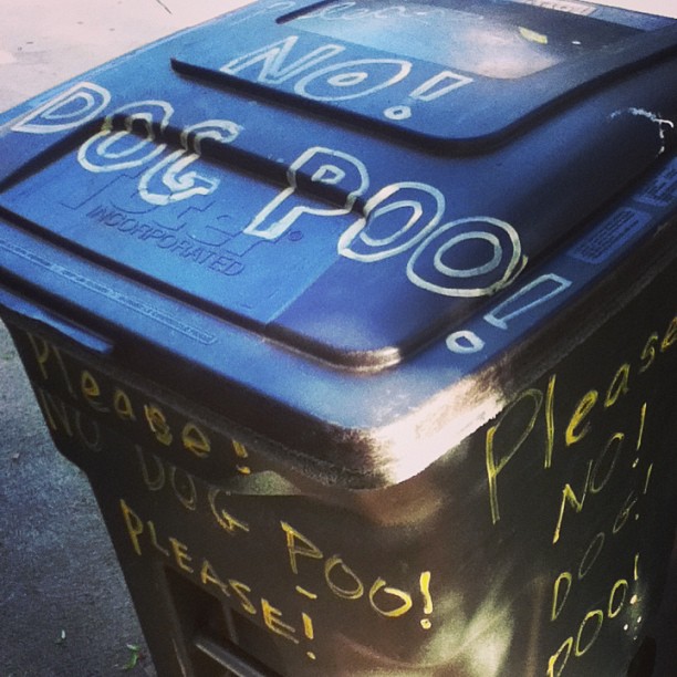 ▼這個垃圾桶上寫滿了:「不准丟狗屎!」