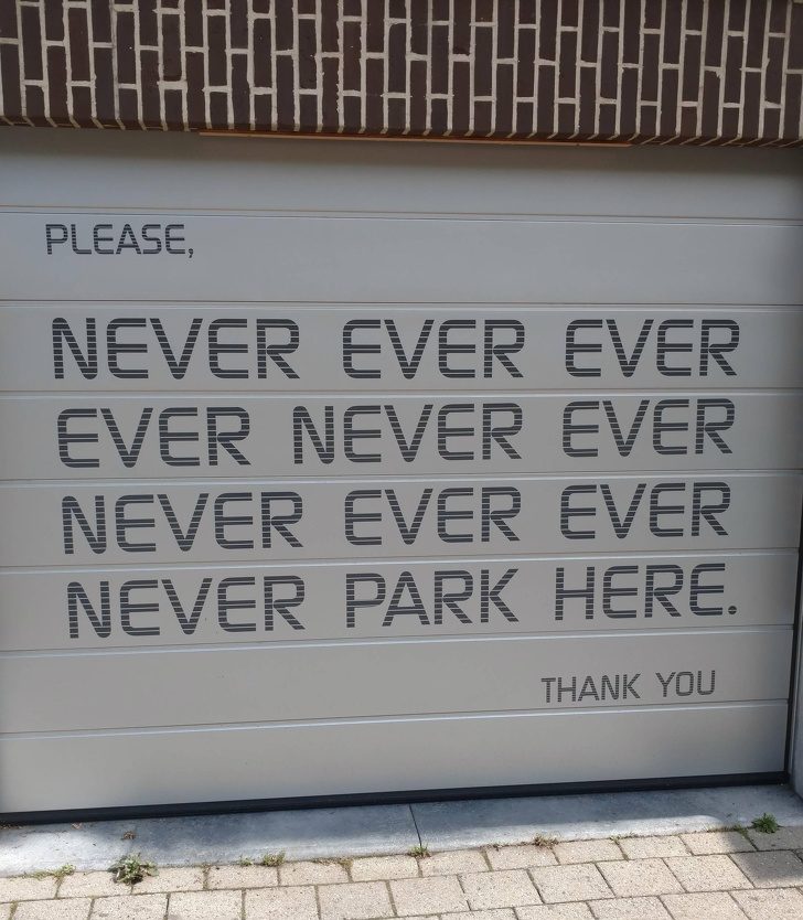 ▼「請,不要、絕對不要、永遠不要停車在這裡,感謝。」