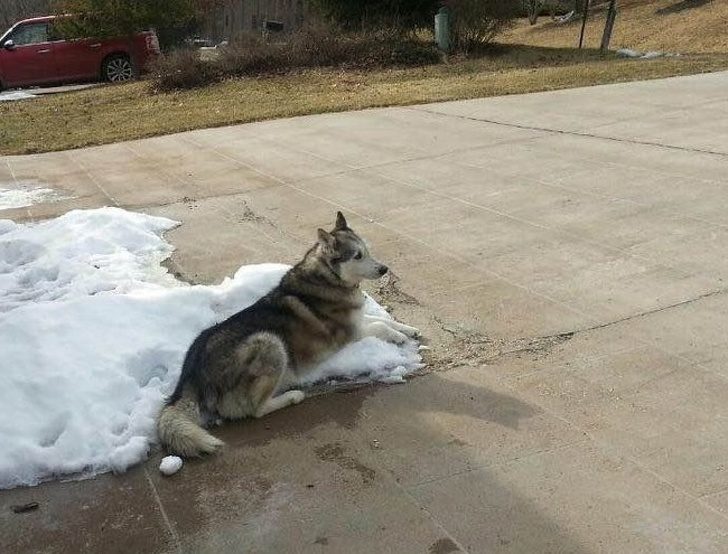 ▼我的鄰居向我投訴冬天時把狗狗放在屋外會讓牠太冷,於是我傳了一張照片給他看。