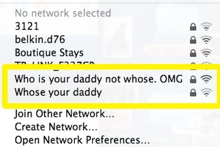 ▼鄰居的 Wifi 名稱是「Whose your daddy」讓我困擾了很久,於是我將名稱改成了…