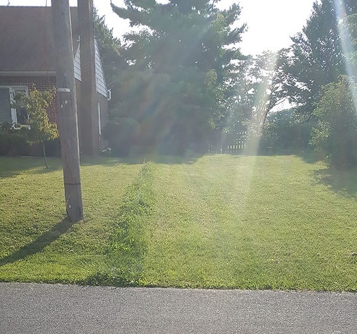 ▼兩個鄰居都修建了草地的雜草,可是很有默契的留下了分割的界線。