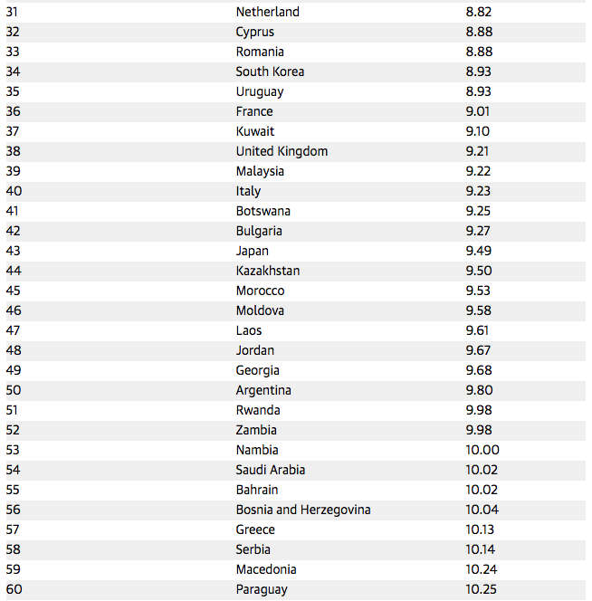 ▼前20名幾乎是經濟发達、醫療保健體系良好的歐洲國家。