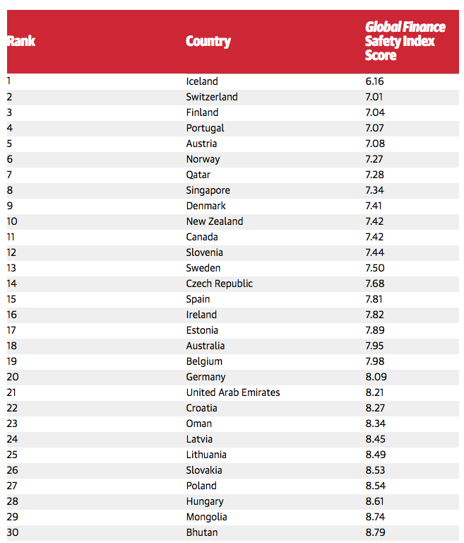 2019年02月05日美國《環球金融雜誌》(Global Finance)結合專家的評分研究,整理出「2019年世界最安全國家」的排行榜。榮登第一名的冰島已經是連續11年拿到這個排名,而美國的排名讓許多網友都表示:「真的不EY~」。