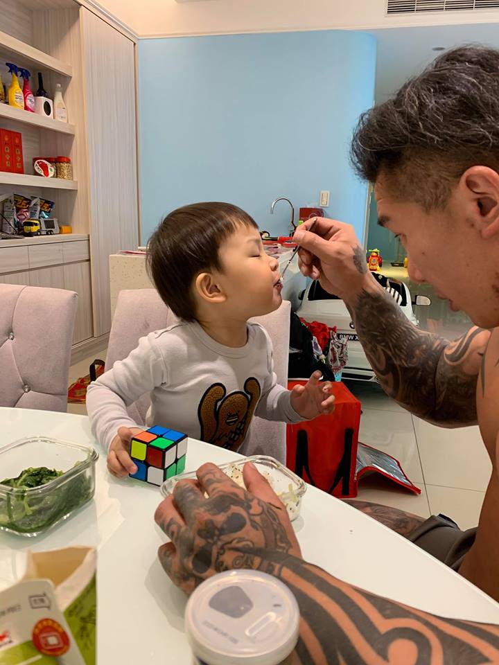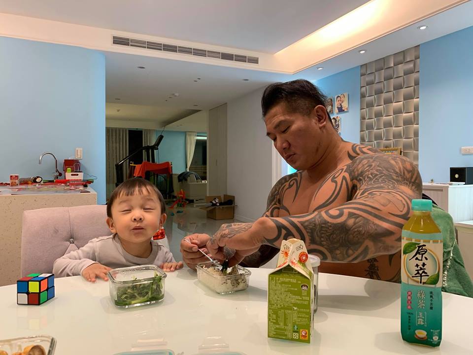 ▼下一張照片中,館長溫柔的用小湯匙將飯一口一口送到兒子的嘴裡,充滿親情的互動讓許多網友留言表示:「 一大早的,被溫馨到了」、「很溫柔的館長,小的這麼早就起床了?」、「當總裁回到家還是要變小弟」、「後面有一台白色BMW帳篷車,是大哥的嗎」。