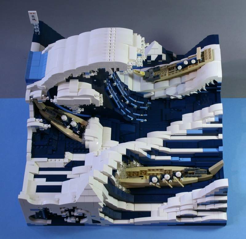▼在他的作品中可以看到,樂高完全重現了原作中的驚濤巨浪,畫中三艘與巨浪搏鬥的漁船也出現在作品中,是不是非常厲害?