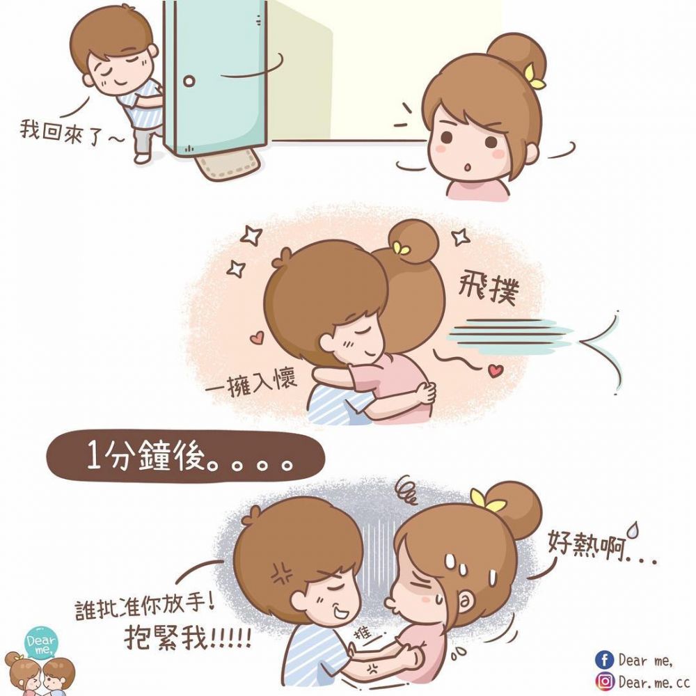 ▼天熱的時候擁抱不舒服,但因為想念,就多抱一下吧。