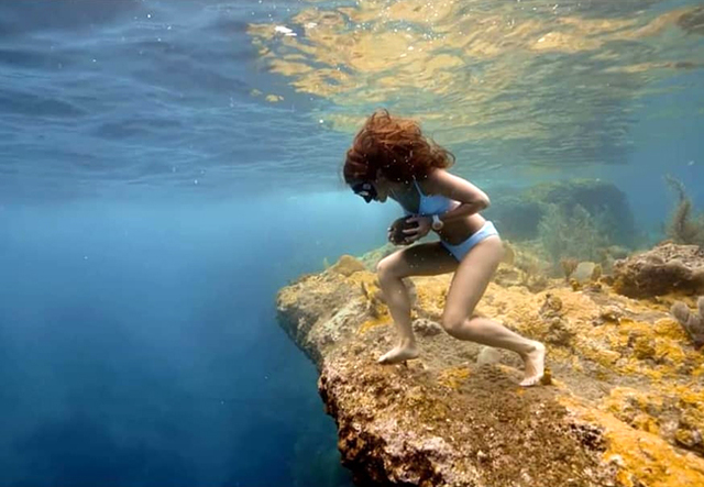 ▼Sofía很愛自由潛水,她表示:「潛水時你能感覺到肺部壓縮、身體充滿水。重力不斷拉著你向下,你不必動,不必做任何事,只要放輕鬆,讓水帶著你走就可以了。」