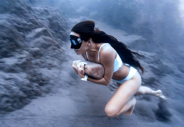 ▼Sofía與攝影師Daan Verhoeven合作,拍攝了一段「水下抱石狂奔」的影片。她在多明尼加海邊抱著石頭下潛約18.3公尺,然後奔跑回海面。