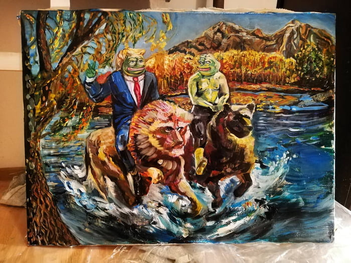 2019年02月07日大家一定認識「佩佩蛙」(Pepe the Frog)吧,牠雙眼泛淚的表情能夠傳達出各種各樣的情緒,所以漸漸成為了網友們的最愛。俄羅斯正妹藝術家Olga Vishnevsky超愛佩佩蛙,她以這隻青蛙為主角創作了一系列有趣的油畫,看起來非常搞笑。