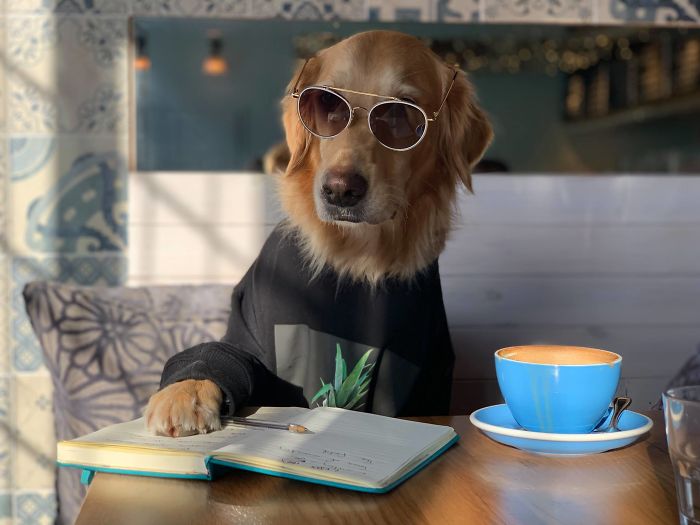 家裡有隻文青金金~ 攝影師「幫狗狗穿人衣」打造出超級型狗