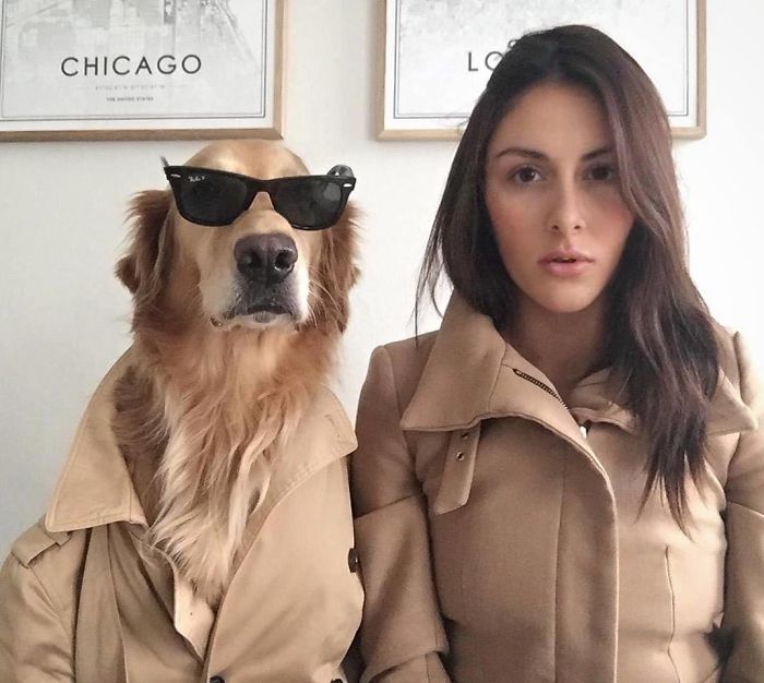 ▼Ursula家有一隻帥氣的黃金,這隻狗狗是她最愛的模特兒。給狗狗穿上衣服、戴上眼鏡,效果竟然好得不可思議。