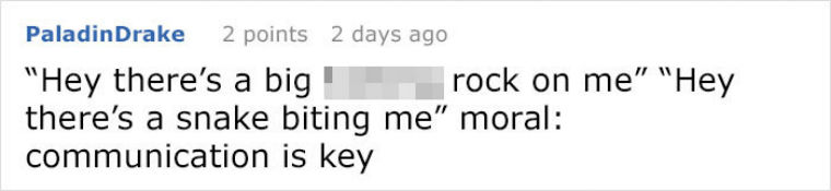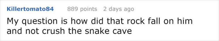 ▼這本來是一個很有意義的小故事,但一些網友卻有自己的問題:「我好奇的是,那塊大石頭是怎麼掉到他身上的?掉下來的時候為什麼沒有砸扁蛇的洞?」