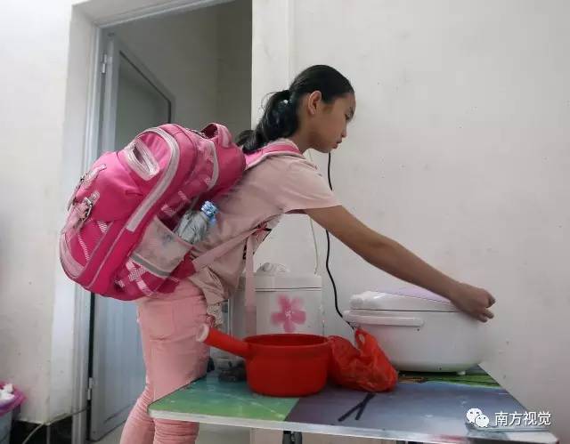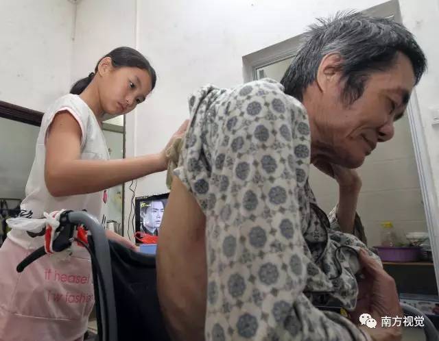 ▼現在小淇每天早上6點起床,先去煮粥,把煮好的粥端給坐在輪椅上的父親,自己匆匆吃完後就去上課。中午放學後,她會去菜市場買菜煮飯,下午放學後還要忙家務。晚上照顧父親洗漱後,才能去寫作業,直到深夜才能休息。