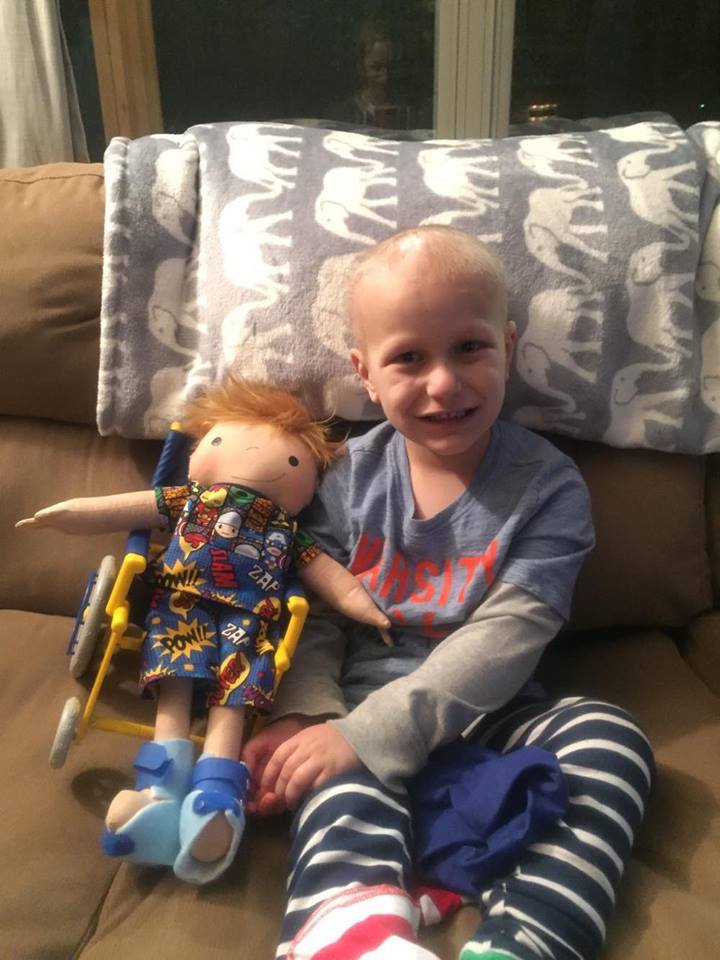 ▼有了同樣萎縮手臂的娃娃,令他感到不再自卑。
