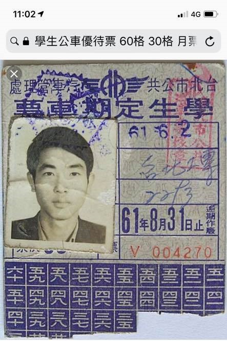 ▼有網友在臉書社團《爆廢公社》中分享了一張公車車牌的照片,可以看到上面寫著「台北市公共汽車管理處學生定期車票」,到期日是「61年8月31日」,下面還有一格一格的數字編號,問到「有人學生時代用過嗎?上車司機就會剪一格。」瞬間勾起了許多網友的童年回憶,紛紛留言表示「這好久了噢!20年沒看過了」、「時代的眼淚」、「國小有,到月底都爛爛的」、「我永遠記得有次剛辦沒多久結果連衣服丟到洗衣機洗」。