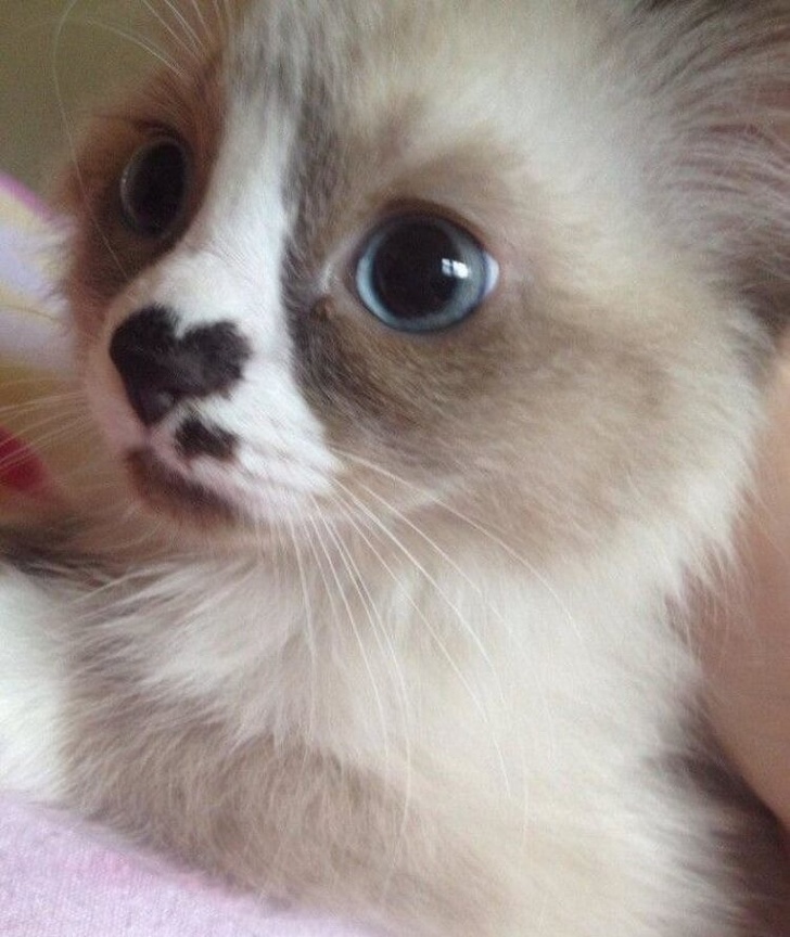 ▼牠的鼻尖上有心型胎記。