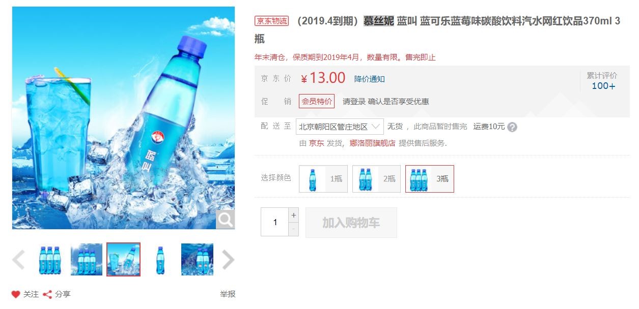 ▼「藍叫可樂」的售價也非常親民,如果一次購買3瓶的話,每瓶的單價只要4.3元人民幣(約新台幣20元)。