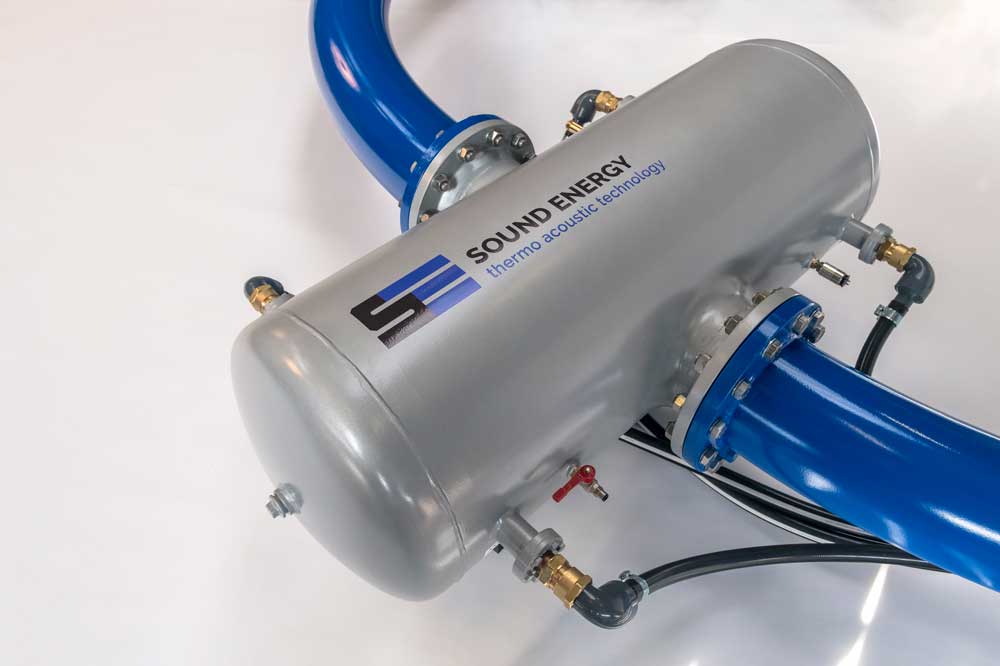 ▼物理學家從幾個世紀前開始,就已經觀察到冰冷的玻璃管只要在末端接上一個熱燈泡,管內的空氣就會膨脹和壓縮,然後發出聲音,這就是熱能與聲能相互轉換的熱聲機制。SoundEnergy研發的熱聲效應也是同樣的原理,他們讓冷卻設備在共振管內產生共振聲波,管內的氣體來來回回而產生壓縮、膨脹並出現溫度變化,再透過熱交換器就能傳遞出冷空氣。