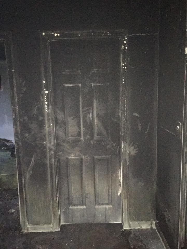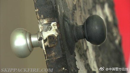 ▼​門的兩側對比鮮明。臥室外靠近火源的一側,門被煙燻黑,但臥室門的內側卻基本完好,僅僅門框有一點被燻黑的痕跡。消防局表示:「臥室外發生嚴重火災時,這扇門較好地保護了室內的陳設。」
