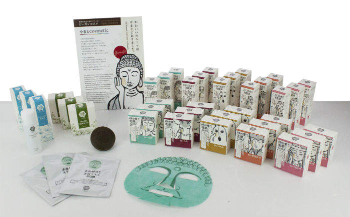 ▼「やまとcosmetic」系列包含了洗臉皂、精華液、面膜等多款產品,最引人注目的就是這款佛像造型面膜。這款面膜不僅擁有佛祖的超高顏值,還汲取了奈良縣內的柿葉和蓮藕精華,添加日本酒米發酵液和柚子精華,保濕效果顯著。