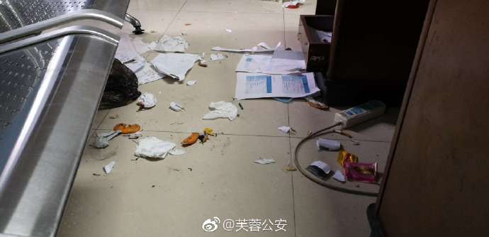 ▼值班的員警有事出去,怕狗狗再次跑丟,就將牠拴了起來。沒想到員警回來時,辦公室已經被「拆」了。調皮的月月把桌椅全都咬爛,紙張也撕得亂七八糟,現場一片狼藉。