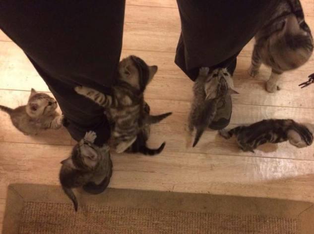 ▼你以為這樣被貓咪圍繞的生活是像天堂一樣嗎?錯了!每次主人要出門上班時,小貓們都會圍上來要求他「不要走」!