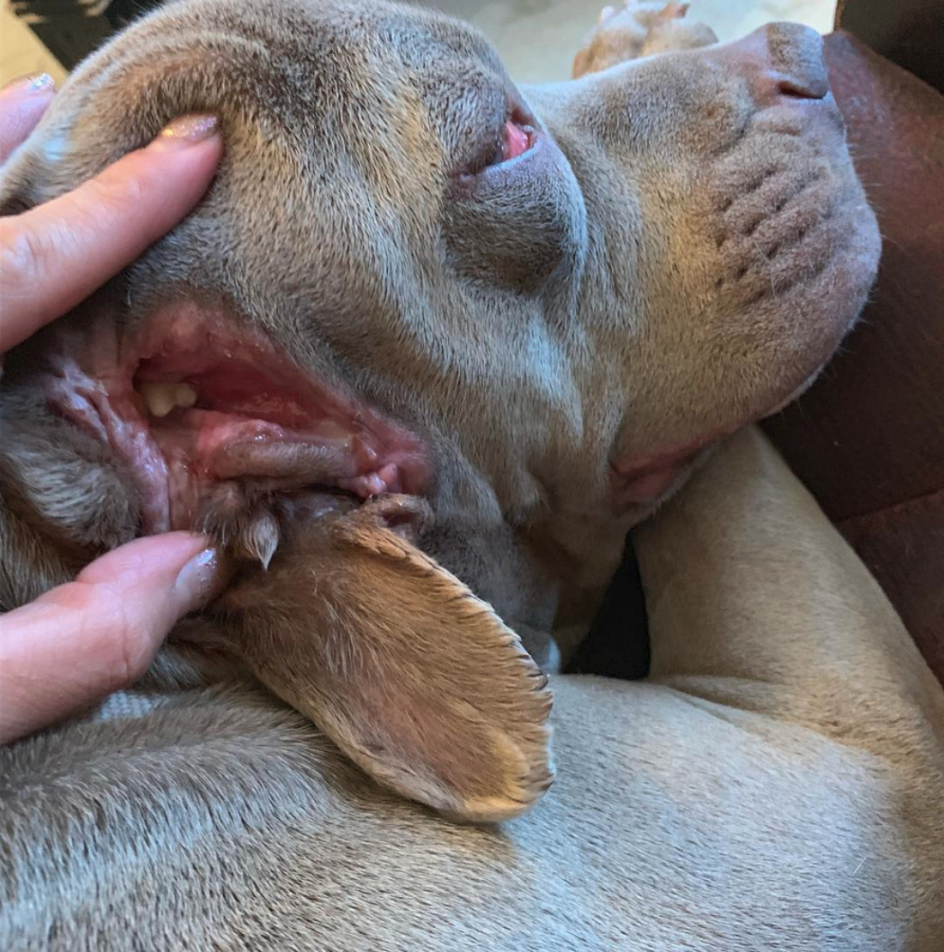 2019年02月15日狗狗竟然有2個嘴巴,而且還是長在耳朵的部位??外國女網友Heather Hernandez真的PO出照片,證明她的愛犬Toad就是這樣一個特別的存在。Toad的「第二個嘴巴」會分泌唾液和有牙齒,只是沒有下巴所以無法做張開、閉合的動作。
