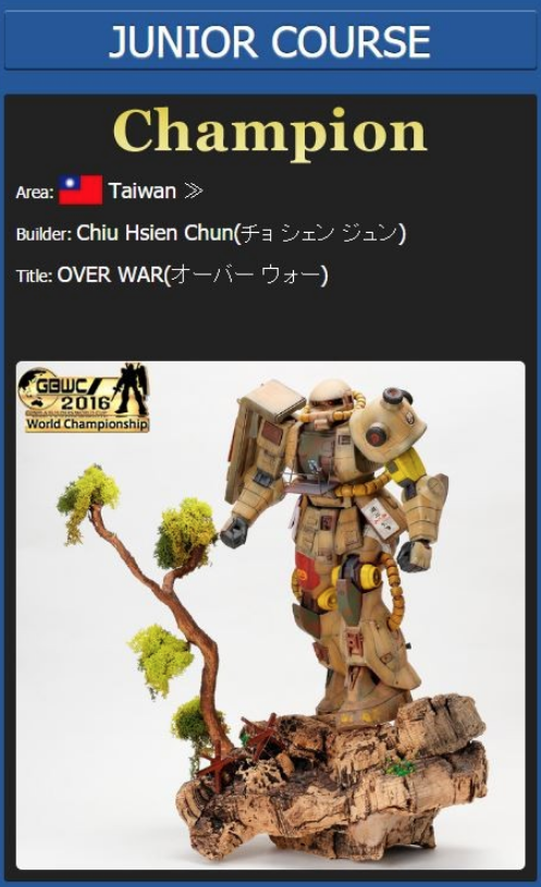 2019年02月16日當時只有13歲的國二生邱顯鈞,因為看了朋友的鋼彈型錄而從此愛上鋼彈。他的熱愛甚至讓他對製作模型產生濃厚的興趣,甚至參加比賽一路從台灣分區冠軍贏到日本總決賽,以作品《Over War》奪下青少年組世界冠軍引轟動!