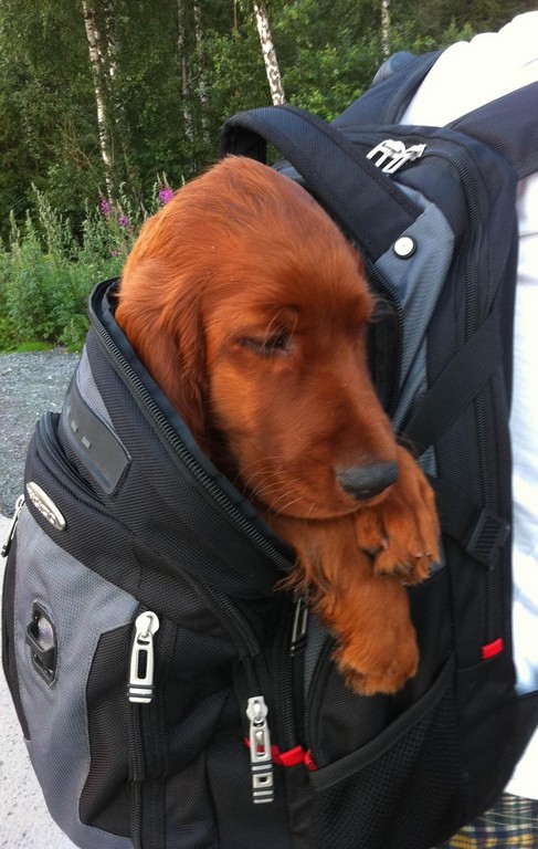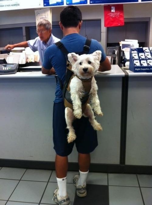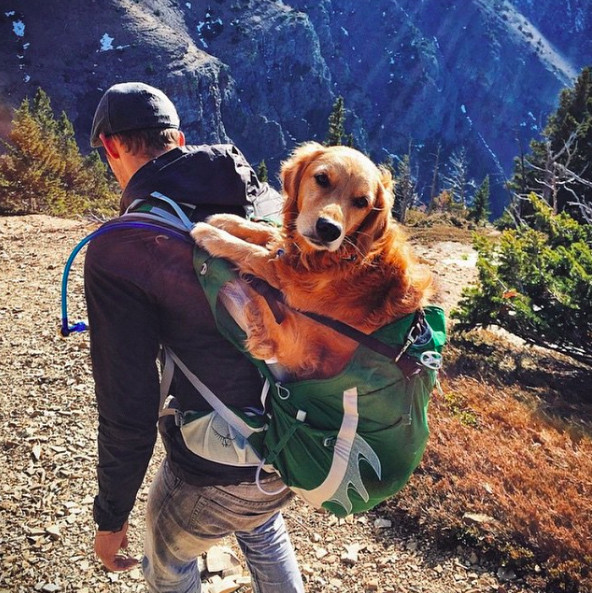 ▼出去旅行也會帶上這隻狗寶,即使牠真的很重,主人還是選擇這樣甜蜜的負擔,出門爬山記得帶上大大的包。