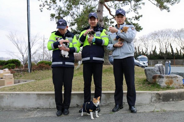 2019年02月14日韓國的釜山警察局來了位特別的客人,牠就是一隻懷孕四個月的貓咪!看到如此可愛的貓咪,警察蜀黍決定收留她。很快這隻貓咪媽媽生下了四個可愛的寶貝,完全就是四個超級萌物。警察蜀黍耐心的照顧下牠們慢慢的長大,如今穿上警服的四肢喵喵已經成了「偶像」,吸引了眾多粉絲。