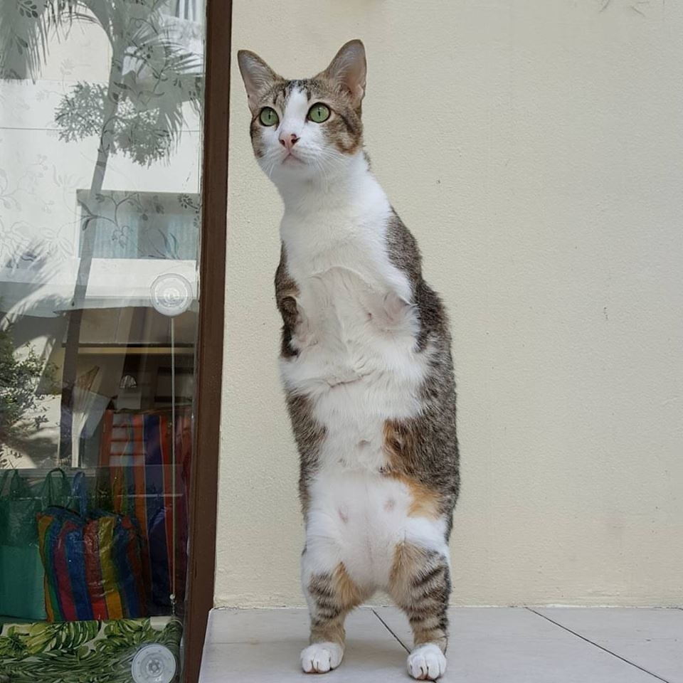 2019年02月14日不管對人還是動物來說,失去肢體都是一件很痛苦的事。幾年前,泰國曼谷一隻叫做 「Able」的貓咪遭遇事故,不幸失去了兩條前腿。堅強的Able沒有被打垮,而是學會了像暴龍一樣,用兩條後腿走路,現在牠已經成為了全民勵志偶像,大家都很喜歡這隻勇敢的貓咪。