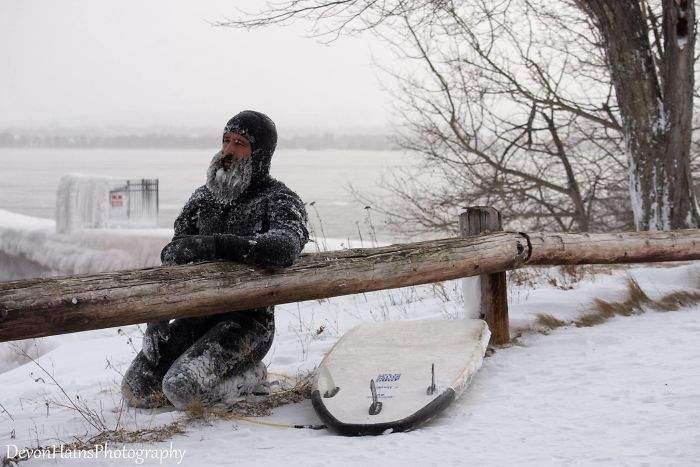 2019年02月17日1月份的美國經歷了來自北極圈的寒流,一度降至零下40的空氣讓人瑟瑟發抖。在美國北部五大湖區的密西根州,兩位瘋狂的衝浪者Daniel Schetter與Allen Finau,決定在這樣的極寒天氣下挑戰一把衝浪。